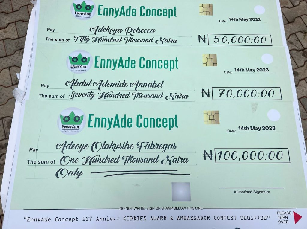 In her statement, “According to Steve Goodier, money is not the only commodity that is fun to give. We can give time, we can give our expertise, we can give our love, or simply give a smile. What does that cost? The point is, none of us can ever run out of something worthwhile to give. It’s on this ideology that I began the idea of establishing EnnyAde Concept.